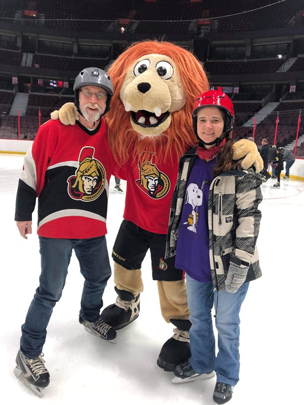 (Note m’lady’s super-cute and very cool Snoopy jersey, which was handed down from a gentleman who played on a seniors hockey team with Charles Schultz.)