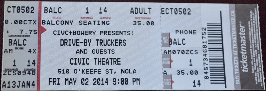 May 2, 2014; this show started early. I remember that I was in the balcony, after that things get vague. There was a conveniently situated bar up there; the staff was working fast and pouring the drinks ridiculously strong. I ordered my first Jack and Coke and was shocked at what the bartender handed me. I sipped off as much as I could and handed the cup back to her.