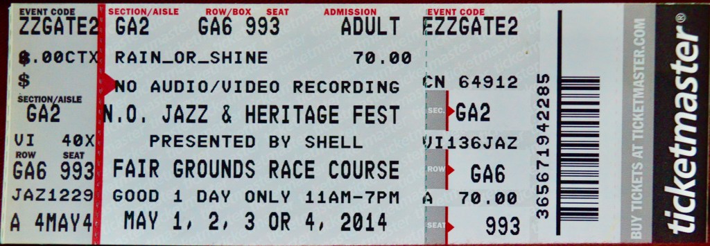 This was my first visit to the legendary New Orleans Jazz & Heritage Festival. I was surprised that the massive grounds of the festival seemed to be in the middle of a residential neighbourhood. The taxi could only get us so close and we had to walk the last several blocks, weaving along small streets lined with classic NOLA shotgun houses.