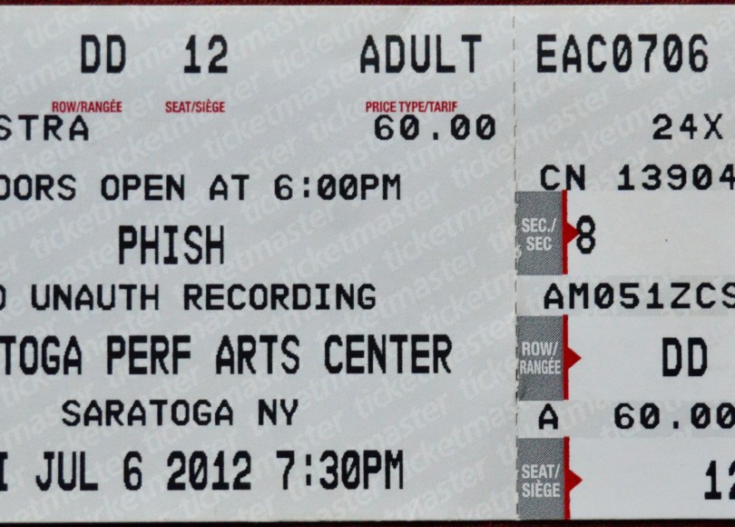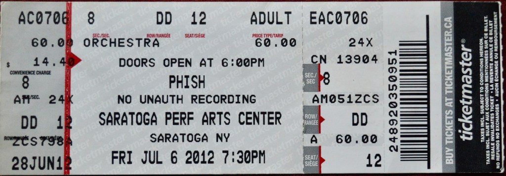 July 6th, 2012 was day one of a three-night Phish run at one of my favourite venues, the Saratoga Performing Arts Center (SPAC). This was the weekend that m’lady and I stayed at the nondescript and relatively unfun Holiday Inn, which was just close enough to the concert shed to make you think you should walk and just a little too far to be comfortably walked.