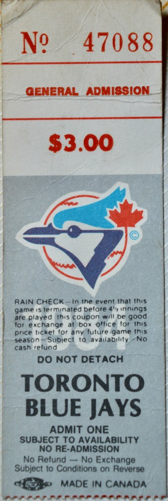 This ticket stub doesn’t provide a whole lot of information on its own. It was clearly a Blue Jays game, obviously the game was played during the season of ’84 and certainly the price of a MLB game several decades ago was significantly cheaper than they are nowadays (a quick search showed tickets for upcoming games this season starting at around $30).