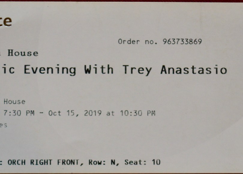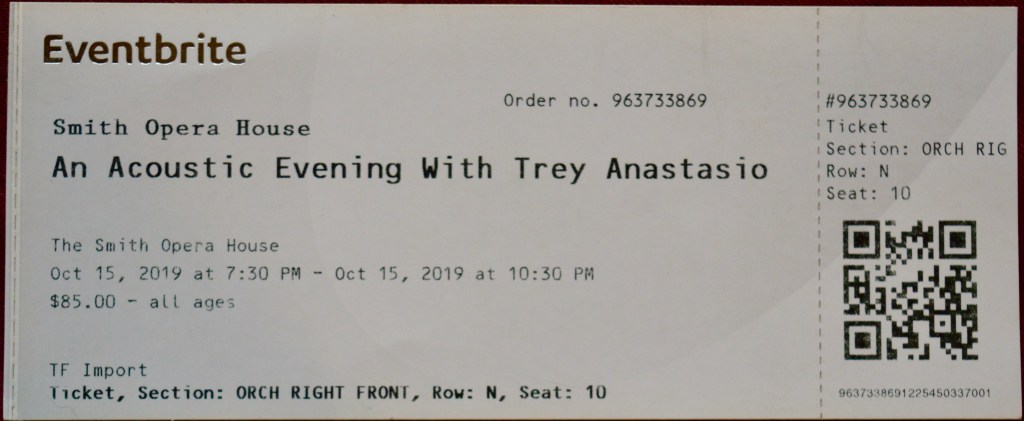 Though we had purchased tickets for the Geneva, New York stop on Trey Anastasio’s solo acoustic tour long before we started planning our wedding, the fact that the show fell on October 15th, 2019 and hence a mere three days after our remarkably awesome Big Day encouraged m’lady and I to treat the run-of-one as a mini-Honeymoon.