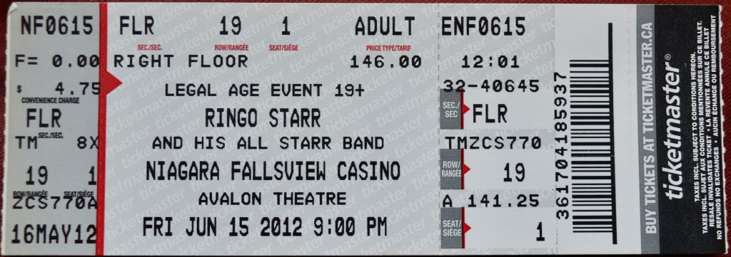 I have seen a few shows at Fallsview Casino in Niagara Falls and I quite like the venue. It’s a nice theatre in a pleasant casino that features a stunning view of Niagara Falls from the terrace. Ringo’s show got moved up by two hours* so I got to the theatre shortly before 7pm.