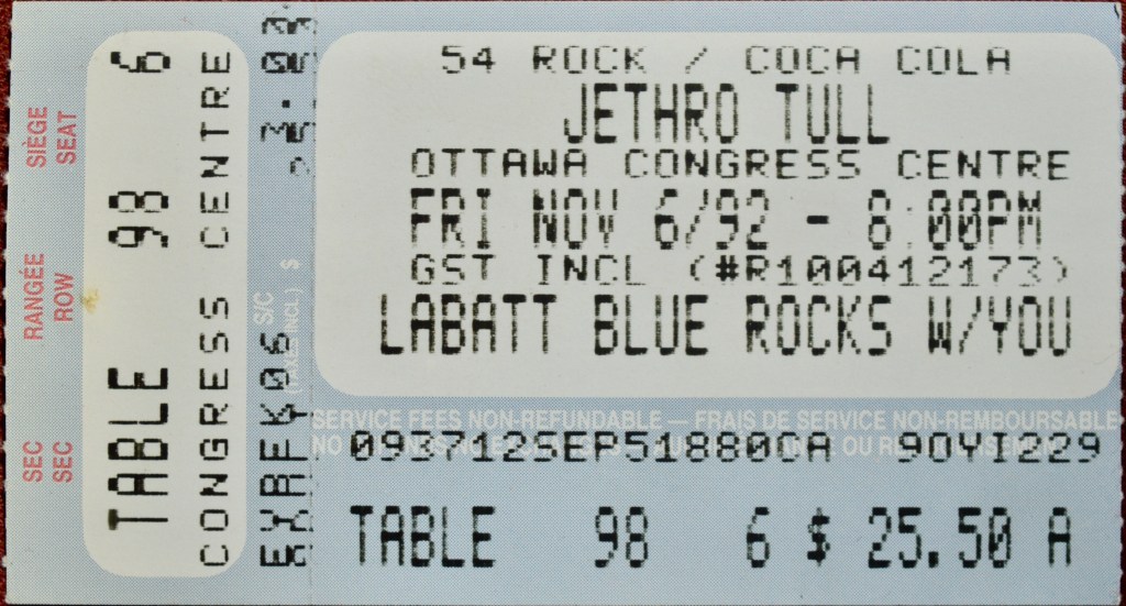 On November 6th, 1992 Ian Anderson and his Jethro Tull hosted an artistic happening at Ottawa’s intimate and nondescript Congress Centre. I had a great seat for a great show a short autumn stroll from my house; what could be finer?