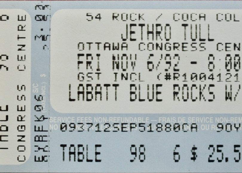 Second is the story of JP, who was in a car on the 401 pulling into Toronto for a couple of nights when the DJ on Q107 mentioned that Jethro Tull would be in the city on the weekend. It then occurred to JP that he had tickets to the Ottawa show that very night and they would go unused, sitting on his kitchen table 460 kilometres away.