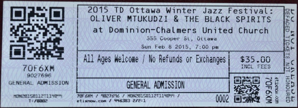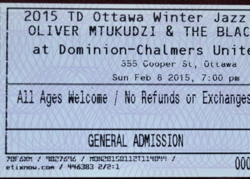 I’m pretty sure the first time I saw Oliver Mtukudzi (or The Black Spirits) was at the Dominion-Chalmers Church in Ottawa on February 8th, 2015. I am hesitant to trust my memories in this case because when I saw him again just six months later in Zambia I had already completely forgotten about this concert and thought that I was then seeing him for the first time.