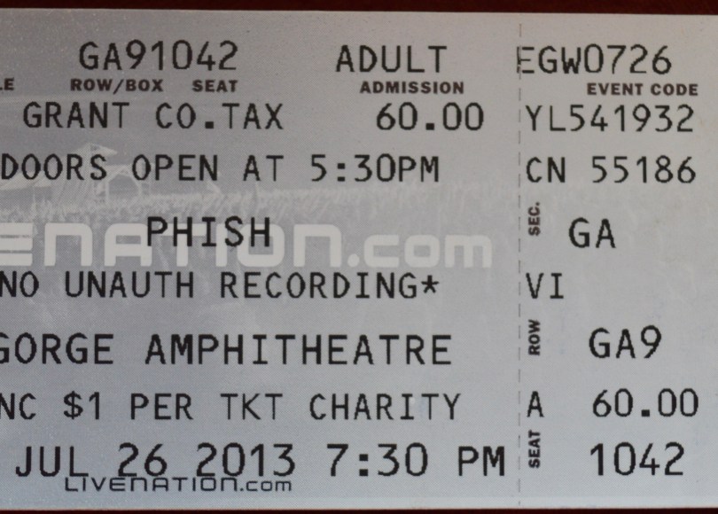 Shortly after we pitched our tent on July 26th, 2013 we realized that things had suddenly changed. Everywhere you looked was a sea of other Phish-ninjas with their fingers in the air. After countless stops at The Gorge the Phish fans all collectively decided to not buy tickets and the entire camping area was scrambling. We quickly finished up our self-imposed welcome-drinks and headed straight to the box office, where we knew plenty of tickets were waiting.