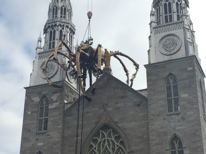 Then I headed downtown where Kumo the spider was balanced high above the ground, hanging between the two spires of the old cathedral directly across the street from the National Gallery. When I got there the area was absolutely cram-packed with people; it looked like I wasn’t the only person that was excited for La Machine. As a matter of fact, it ended up being the most popular of all of the Canada 150 events, bringing in twice as many curious onlookers as they were expecting and eclipsing literally every other event that hit the city that year.