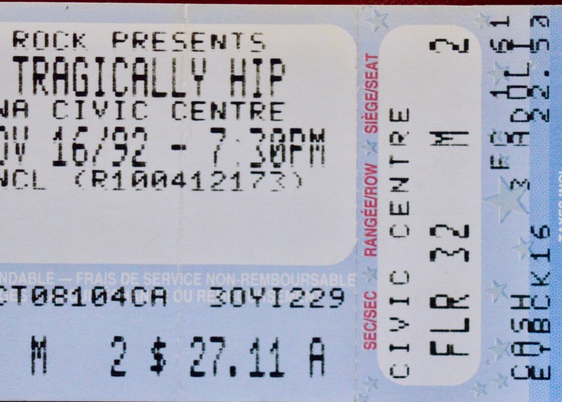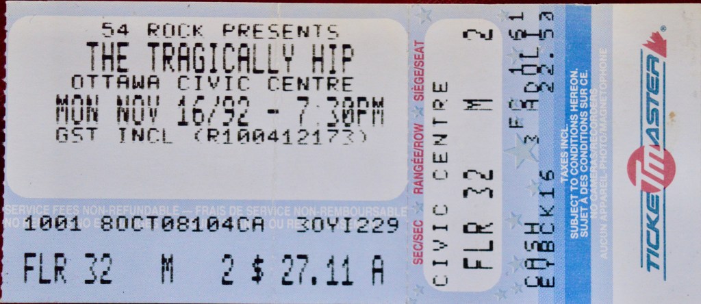 On November 16th, 1992 I went to see The Tragically Hip at the Ottawa Civic Centre. This was just my second time seeing the band and I remember being seriously impressed with their sudden rise in fame. Though The Hip were still a year or two from selling out multi-night stands in rooms the size of Maple Leaf Gardens in mere seconds the Civic Centre was unquestionably a massive step up from the Congress Centre, where I saw the band just a year before.