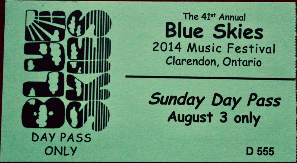 On Terry Fox Weekend of 2014 m’lady and I went to my favourite secret holistic music meditation education childhood appreciation festival, Blue Skies. Okay, it wasn’t exactly the whole weekend. In the later era of my Blue Skiesing it wasn’t unheard of for me to shun camping for the weekend (against my better will) and instead attend for a single day as I did in this case, on August 3rd*.