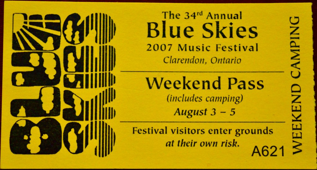 Over the years I have remained rather meticulous with my ticket binders, obsessively keeping track of each and every band I saw – however briefly – at the many festivals I’ve had the fortune to attend. But when it comes to the festival I love the most (Blue Skies) I almost never kept track the bands that I saw on the mainstage during those many magical weekend-long gatherings, an omission that is unique in my binders.