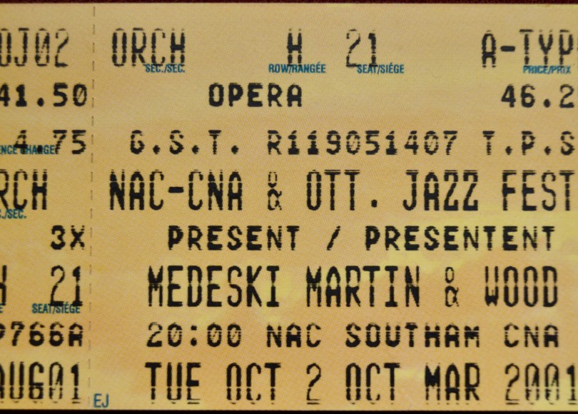 On October 2nd, 2001 Medeski Martin & Wood were playing at the National Arts Centre and I had a ticket (of course). It’s curious that despite the fact that it seems pretty unimportant, I’m sitting here struggling to remember how I got to the show. At the time I was living in a nifty two-storey loft apartment in Ottawa’s Chinatown and it would have been a pretty long walk to and from the NAC. And I doubt I drove; I rarely drive anywhere in the city.