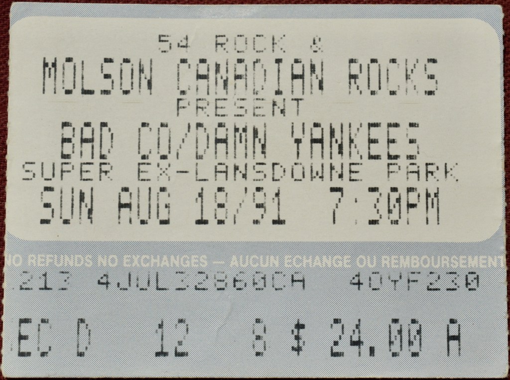 So I jumped all over tickets for their show at Lansdowne Stadium on August 18th, 1991. It didn’t hurt my cheese-rock soul that the concert was a double-bill with Damn Yankees, a dull flash-in-the-pan supergroup featuring members of Styx and Night Ranger and fronted by the very icky Ted Nugent.