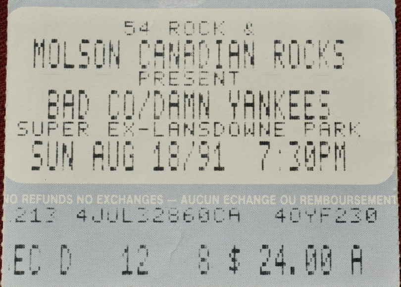 So I jumped all over tickets for their show at Lansdowne Stadium on August 18th, 1991. It didn’t hurt my cheese-rock soul that the concert was a double-bill with Damn Yankees, a dull flash-in-the-pan supergroup featuring members of Styx and Night Ranger and fronted by the very icky Ted Nugent.