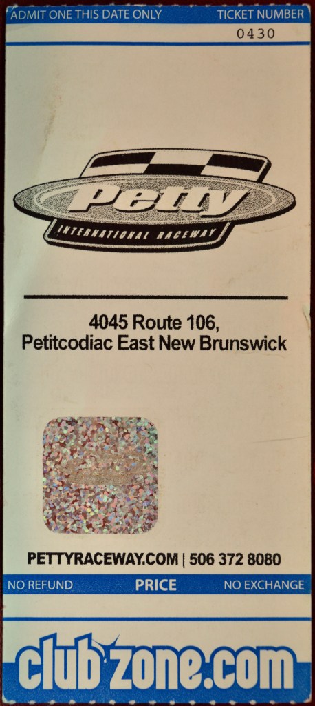 ***Although Saturday nights at the Riverglade Speedway just outside of Moncton made up a huge chunk of my summertime memories as a child, I do believe this was my first and only time at Petty Speedway, also on the outskirts of Moncton. And while the shiny-new pee-troughs in the bathrooms were rather impressive, this old bundle of nostalgia still prefers his memories of the greying run-down creaky splinter-bleachers and crumbling concrete track at old Riverglade.