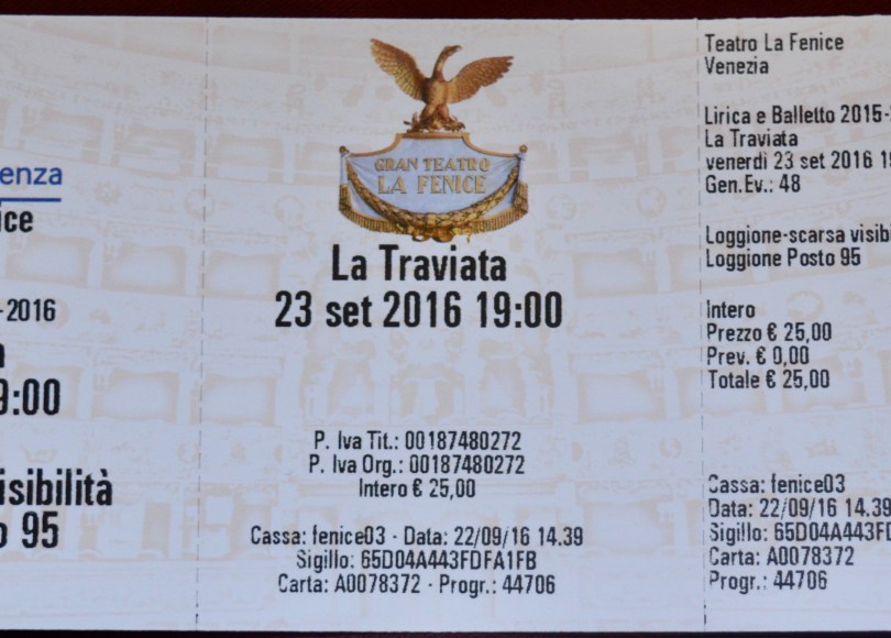 We stopped for dinner, our only meal of the day. I didn’t really feel like Italian food but whatcha gonna do? I had lasagna (again) and m’lady had soup (again, again). We shunned wine at dinner in case that was part of m’lady’s malady (she had started the trip on the ill side) and got out of there with plenty of time to get to the Teatro Fenice (Phoenix Theatre).