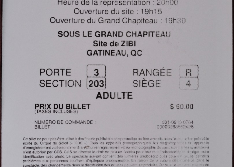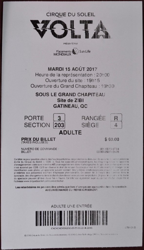 On August 15th, 2017 I made the quick jaunt across the Ottawa River to Gatineau, Quebec, where the Cirque du Soleil people had erected one of their wonderfully Suessian Big Top tents in which to house their brand-new touring show, Volta.