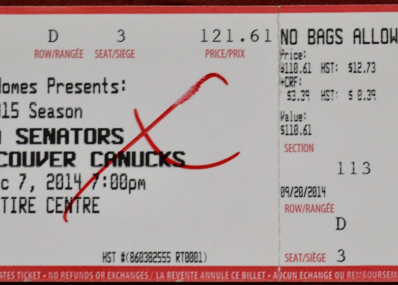 If I’m not mistaken, tickets to the Ottawa/Vancouver game on December 7th, 2014 might have been an early Christmas present from me to m’lady, though I could easily be wrong about that. It makes sense though; before moving to Ottawa from her home in the Vancouver area the Canucks were her favourite team (of course), and on top of that these were no ordinary tickets.
