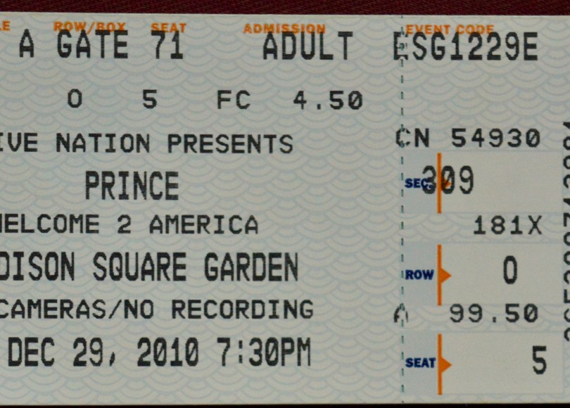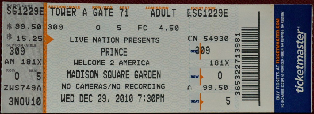 After forty-three years tromping the terra December 29th, 2010 was my first-ever birthday show, and it was a biggie too: Prince at Madison Square Garden in New York City.