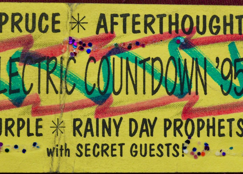 With regards to this ticket from December 31st, 1994…well, I don’t remember a whole lot specifically from this night but then that’s pretty much how the events were designed. I remember watching Purple open the show but I’m pretty sure the band was just two people back then? I always liked Purple…is it possible this was the first time I saw them? They registered a relatively tiny blip on the Ottawa music scene but like I say, I always thought they were pretty good. The little piece of paper that lives beside the ticket stub in my concert album tells me that I saw Spruce too. I do recall watching their set but when it comes to seeing Incity Dreams I’m going to have to take my handwriting’s word for it, I don’t recall seeing them at all*.