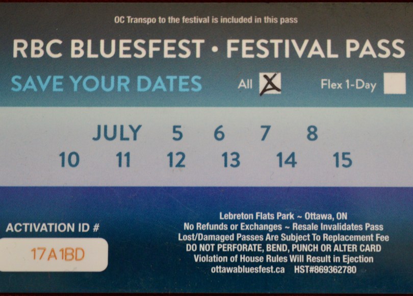 In the Spring of 2018 I was pleased to get a rare phone call from my nephew back east in Moncton, asking if he and his newly-minted wife could come to town for the Ottawa Bluesfest and stay with us for the week. Of course m’lady and I were happy to oblige; we freshened up the spare bedroom and stocked the fridge.