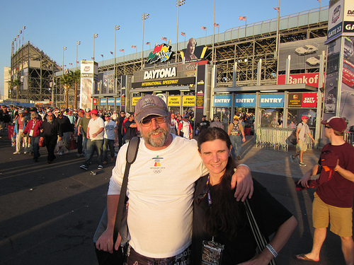 I had stayed in my dad’s motor home in the closest campground to the track, though it was still some ways away. I had stayed up way too late the night before and was shaken out of sleep when my brother arrived telling me the shuttle to the racetrack was leaving in fifteen minutes. After a flurry of disgruntled activity m’lady and I joined him and a family friend on the bus and off we went.