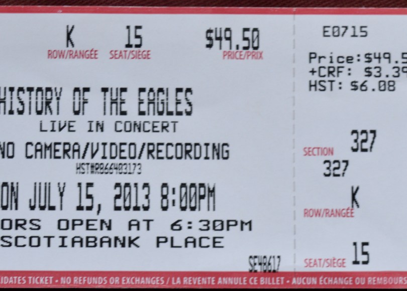 On July 15, 2013 I finally got to see The Eagles. I had balked at the ticket prices for their Hell Freezes Over tour (funny how $100 a ticket seemed outrageous at the time) and had missed the few opportunities since. I believe this ticket came as a birthday gift so this time I didn’t even have to consider the ticket price.