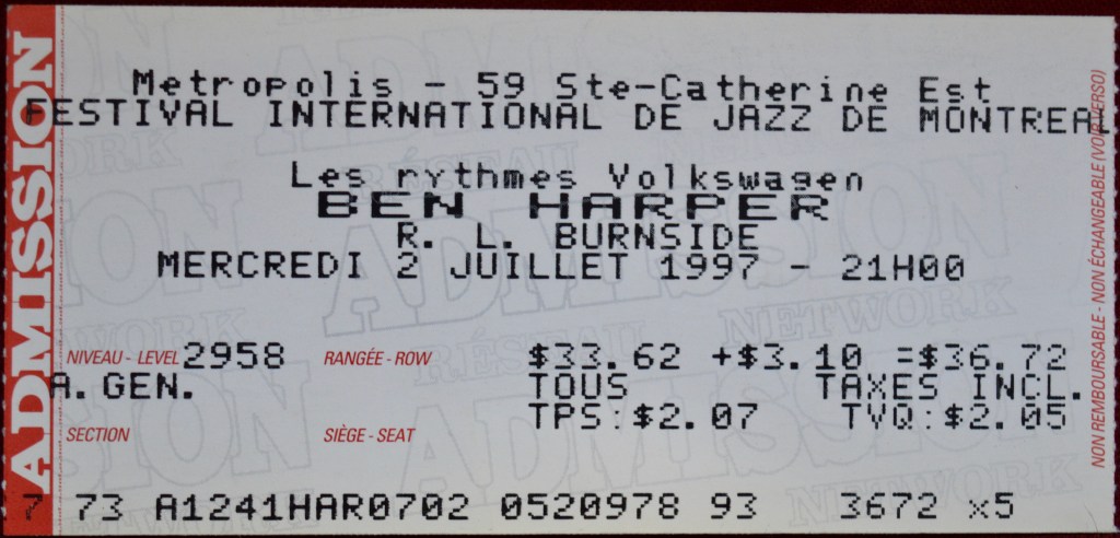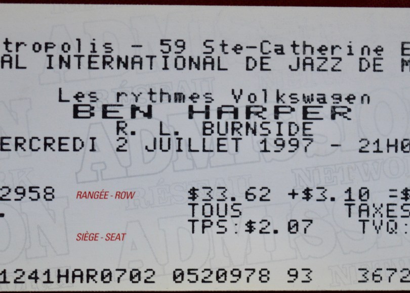 And then summer came, the Montreal International Jazz Festival announced its lineup, and I made my picks, including a Ben Harper concert slated for July 2nd, 1997. I was excited!