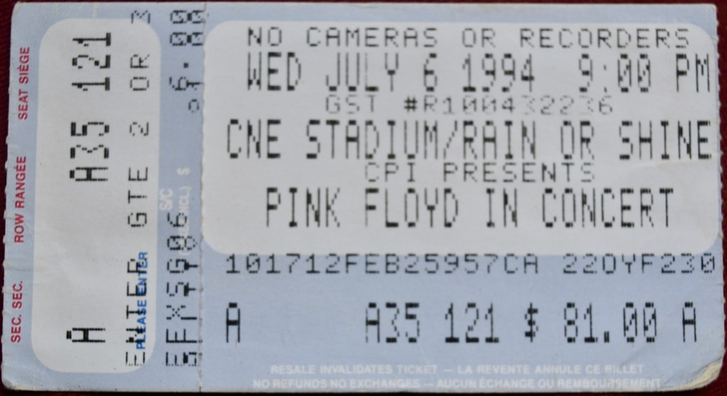 Waking up on July 6th, 1994 with my brain still buzzing from my first Phish show* I grabbed a coffee or three, packed some bags and hit the road headed towards Toronto for my first experience with Pink Floyd. Of course I didn’t make great time and by the time I found free street parking within striking distance of Exhibition Stadium it was getting close to show time.