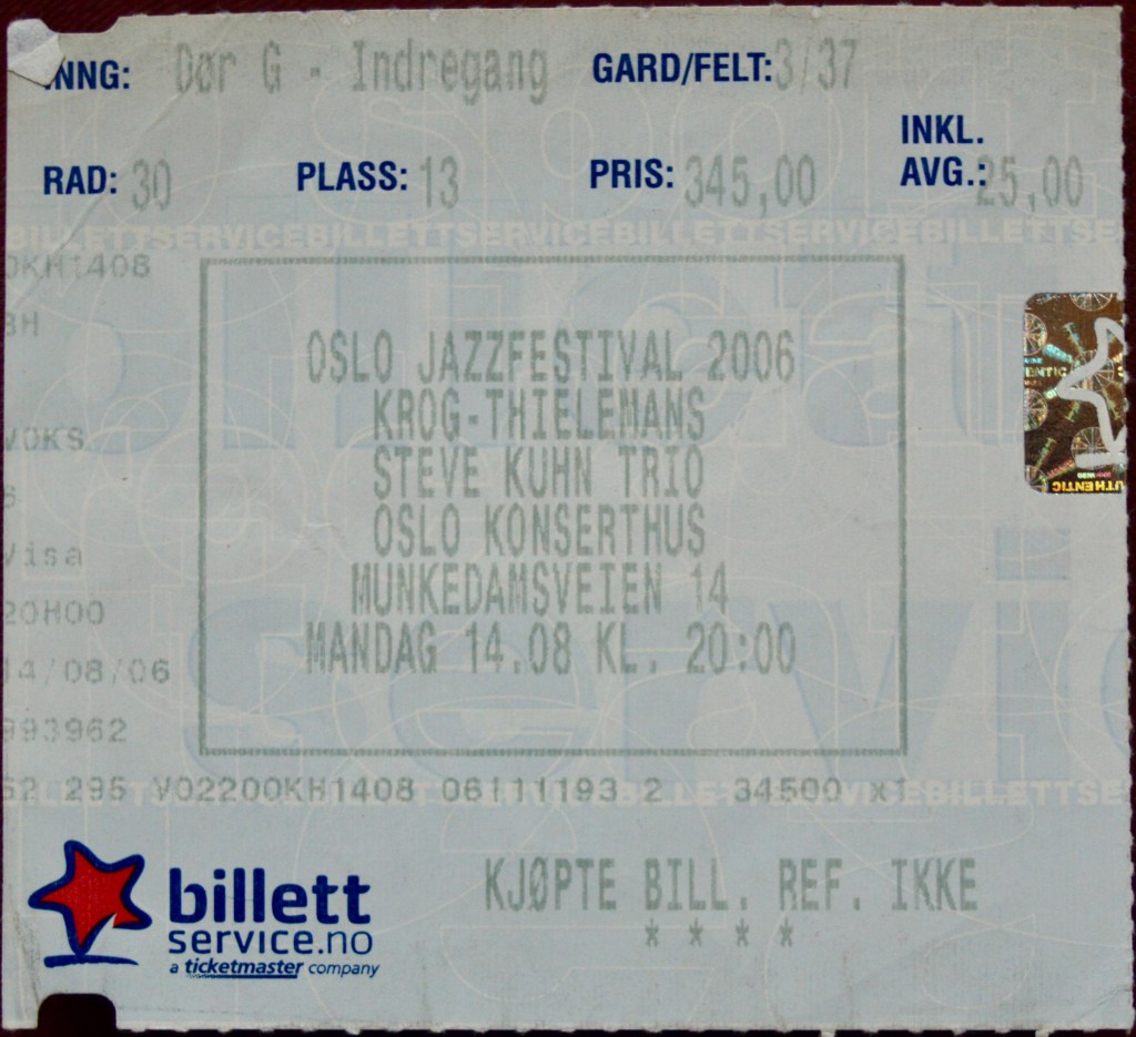 No matter, my repose in the beautiful Nordic capital was at it’s end and I had a (pre-purchased and thus free) ticket to see the legendary Toots Thielemans at the Oslo Konserthus on August 14th, 2006.