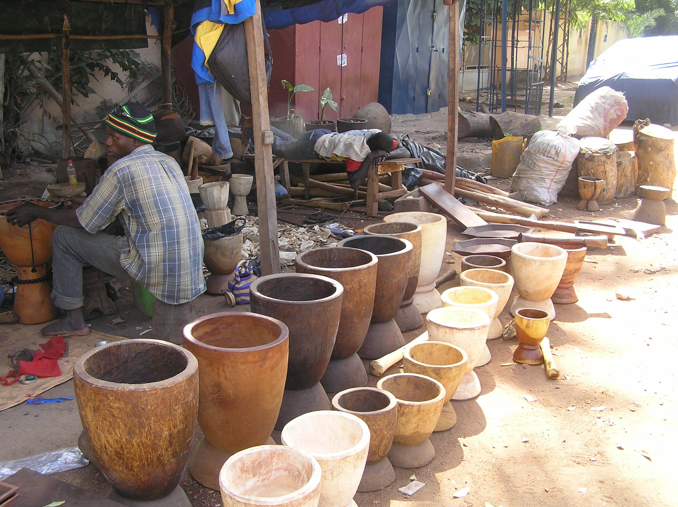 I’m not sure what kept me busier, the ceaseless bargaining required to obtain any item or the endless barrage of hawks pulling me (and my pockets full of precious CFA’s) in one direction or another hoping their shop would catch my eye. And once you have a bag of purchases in your hand – proving that you’re not “just looking” – the hawks go into overdrive! Even as we tried to return to our taxi we were surrounded by a moving phalanx of merchants attempting to push their wares into our hands and dropping their prices with every step. When we finally got to the car a few of the merchants all but crawled into the cab with us, the rest thrusting products at us through the open windows. Just as we were pulling away I bought a wooden mask for 3,000CFA. The starting price had been 50,000.
