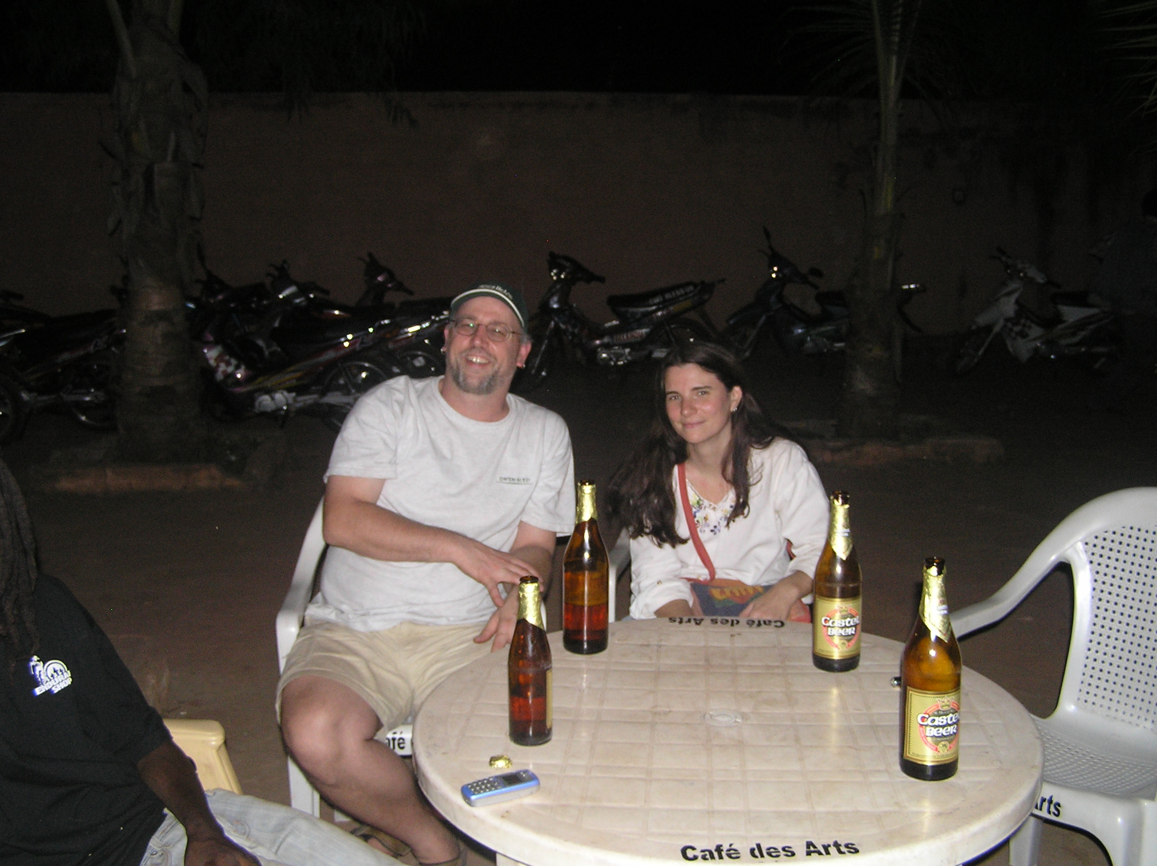 Dit Weah was a pretty solid player and we had a good jam. I’d assumed that the owner had told him that I was going to give him the guitar but it seemed that I was wrong. When we were done playing m’lady took a couple of pictures of us with the guitar for the OFC newsletter, but when I tried to hand him all of my picks along with an extra set of strings Dit looked baffled. When I made it clear that the guitar was a gift the man actually screamed. I swear, he could not possibly have been any happier. He thanked me and thanked me, pumping my hand with both of his with a handshake that would make Kreskin blush, a look of wonder and amazement pouring from his eyes.