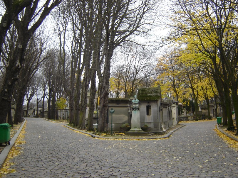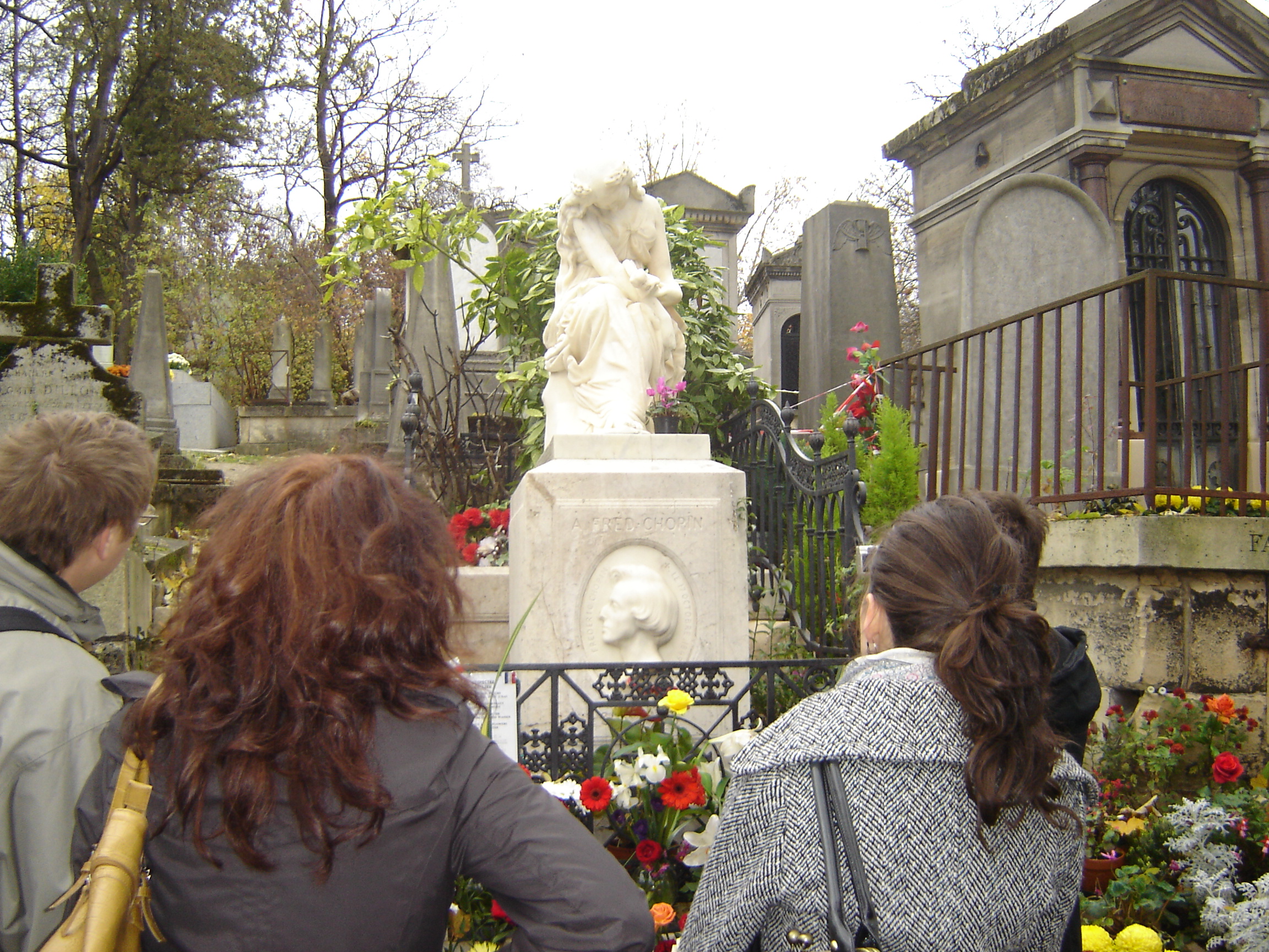 After our très petit dejeuner we visited the famed Cimetiere du Pere-Lachaise. We wandered amongst the gorgeous memorials, discovering the final resting places of Bizet, Chopin and many other note-writing notables. Popular culture* being what it is, of course the peak of the visit was the alleged final resting place of Mr. Mojo Risin: Jim Morrison. Cheesy yet necessary, the pilgrimage is complete.