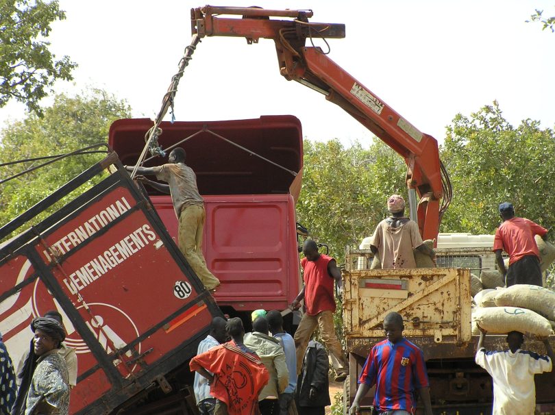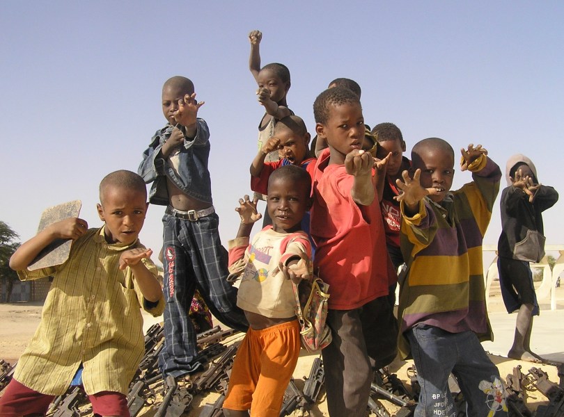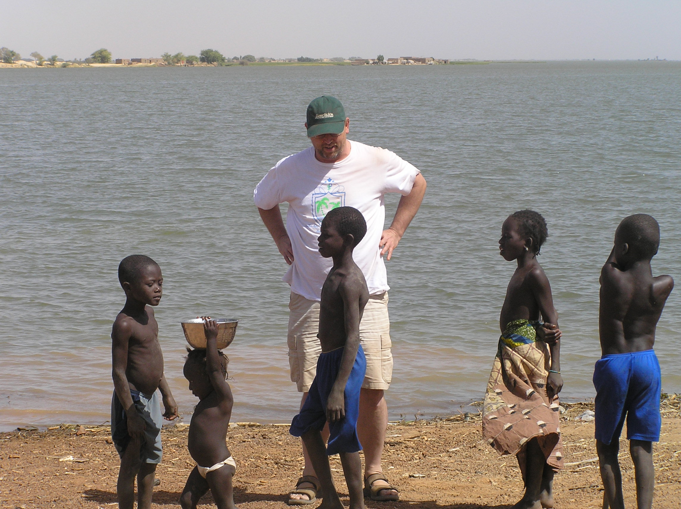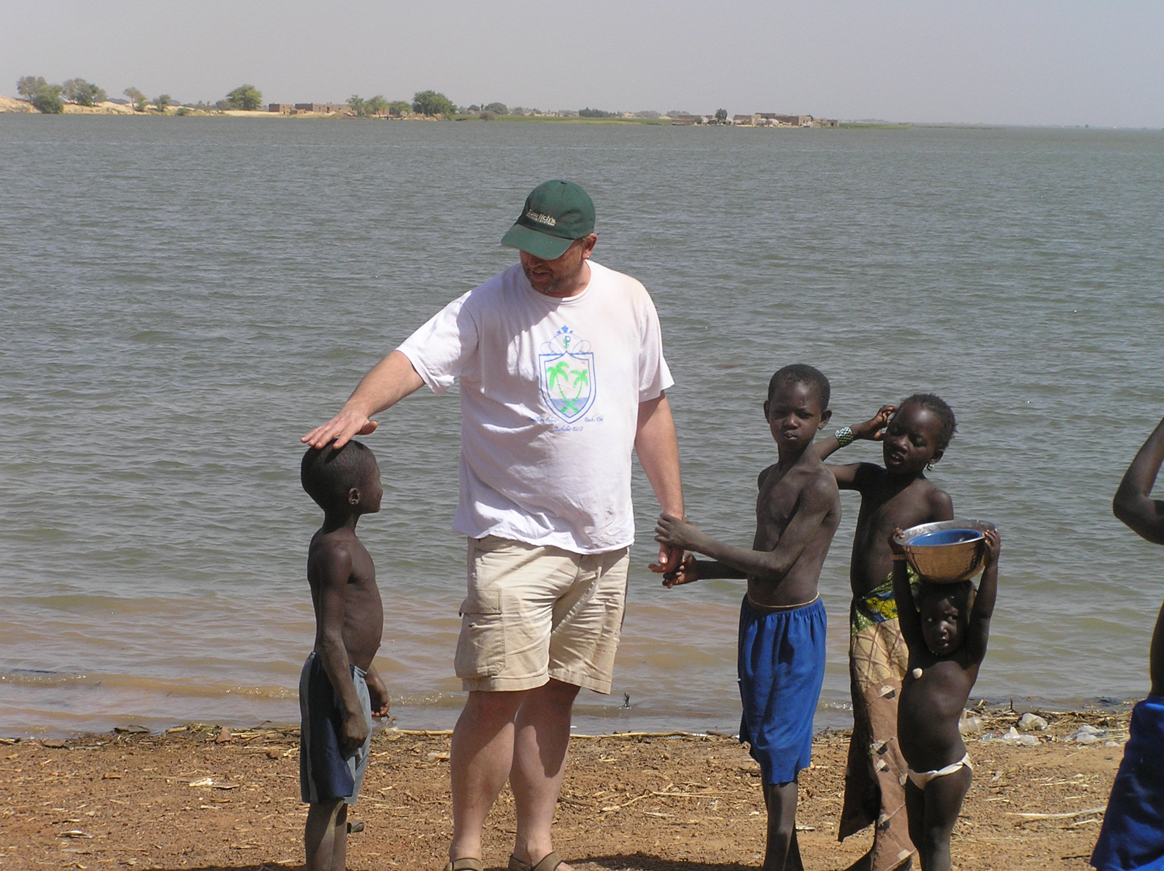 After seven hours we arrived at the shores of the Niger River. While we waited for the ferry I played with a group of children that surrounded the dock. We amused ourselves by finger-painting portraits of one another into the dust-caked body of the 4×4. Meanwhile an impromptu game of hacky-sack broke out, but of course nobody actually had a hacky-sack. The game began with some sort of unidentified fruit peel in place of a real ball before upgrading to an empty cigarette pack.