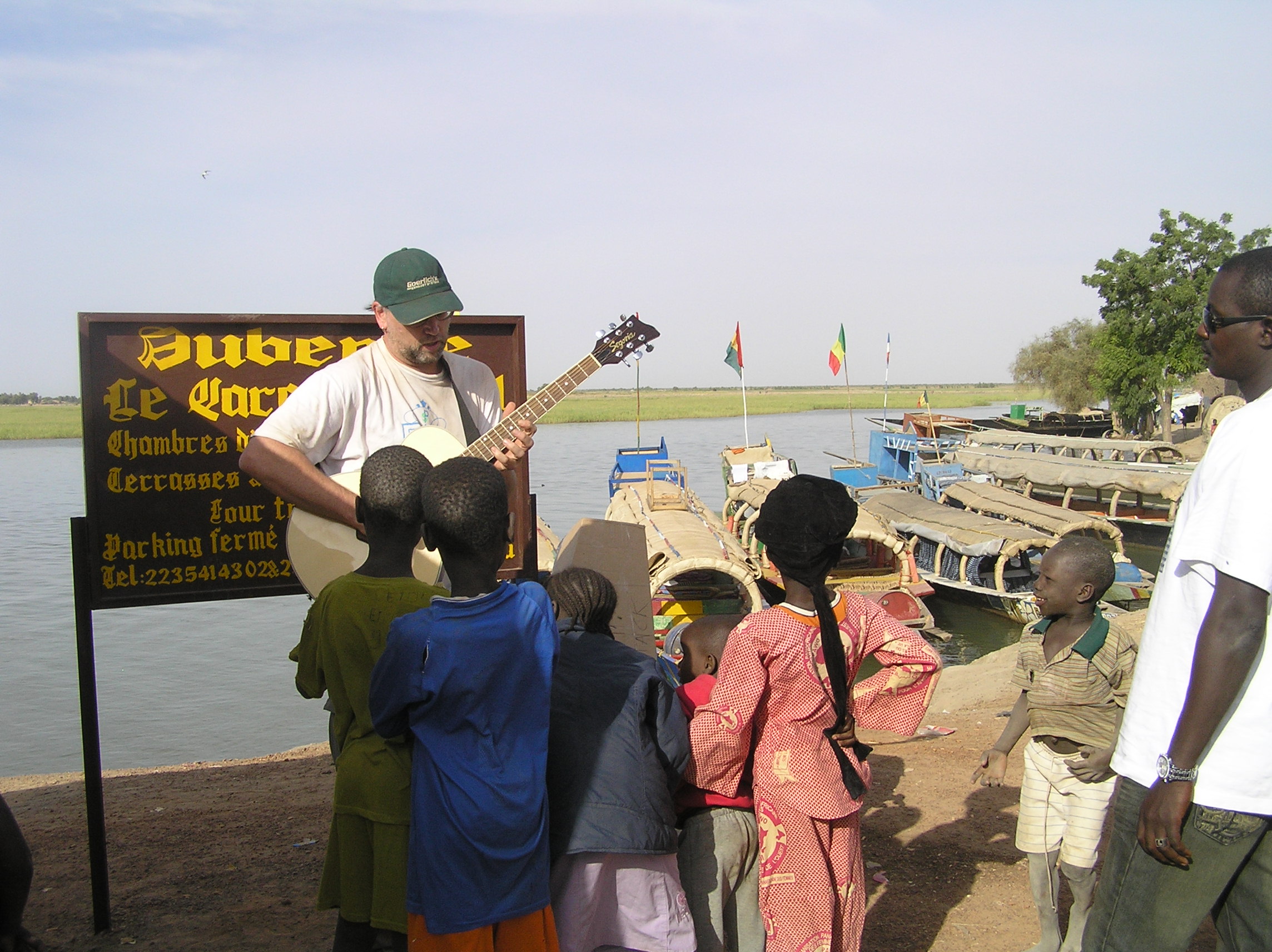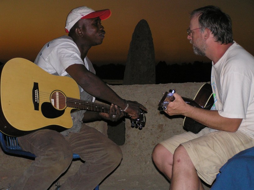 M’lady and I left Weah alone with his new instrument and went downstairs to the courtyard. Though it was already abundantly clear that the guitar had gone to the right person the surety only grew as we heard him playing on and on up there on the roof. When he finally came down he thanked me loudly and profusely once again, promising that the next day everyone in Djenné would know of the gift I had given him. He began as he walked towards the front gate of the Hotel Djenné-Djenno, stopping at the only other occupied table in the courtyard and pointing at me. “That man has just given me this guitar!” he exclaimed. “He GAVE it to me!” Outside, Dit Weah hopped onto his moto with his guitar tucked tightly under his arm and rode home a very happy man.