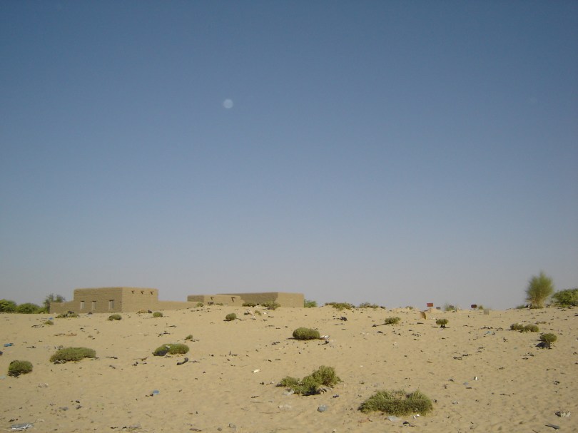 At the crossroads our job was not simply to wait, we had to actually had physically flag down any bus we saw that was heading our way, which in this case was Bamako. It’s not like we were at a bus stop or a collectif depot or, well, anything. We were simply two people and their luggage sitting in the hot midday sun on the side of an empty, sandy crossroads in the middle of North Africa, one of them feeling very sick. I mean this place was desolate, and the road proved to have very little traffic of any kind going in any direction.