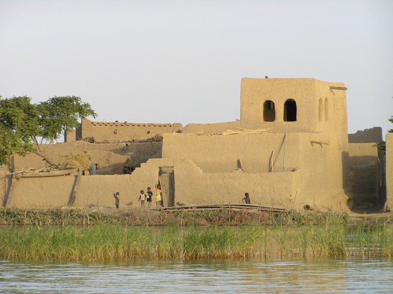 After nine-and-a-half hours on the bus we finally arrived in Mopti (the fare cost 8,000 each, which was less than $20CDN). Somewhere along the way m’lady had started feeling better and otherwise the ride had been relatively painless, but when we stepped off that bus and into the mayhem that accompanies arriving busses in these parts we were hot, tired and hungry. Especially “hot”.