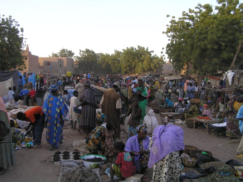 Bamako has a population of approximately two million and I’d swear they were all at the market. The place was nothing short of chaotic. We crushed through throngs of people crowded around booths that were piled high with every product imaginable. We weaved past ladies balancing overloaded baskets on their heads and around squawking piles of bound-up chickens while eager merchants tried to thrust random items directly into our hands. The atmosphere was so thick that it was impossible to tell when we were indoors or outside or where exactly we had entered or left buildings, as we did over and over. When we passed through the fetish market we saw dried monkey heads arranged in rows and baskets laden with colourful dead birds, along with anything else one might require to keep their spirit world appeased and at bay.