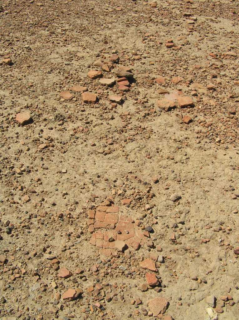 As we walked over the flat, hard-packed fields towards the site I wondered how anyone could have thought to dig in this specific area. Soon the answer was underfoot. To stroll around the Djenné-Djenno site requires one to be constantly trodding upon and around thousands upon thousands of pot shards. I mean they were everywhere, hand-decorated pieces sometimes bigger than your face, just sitting there on the ground, or just as often embedded in the dense earth. Most of these pieces of pottery were about 4,000 years old, and here I was utterly unable to avoid crunching them under my feet with every step.