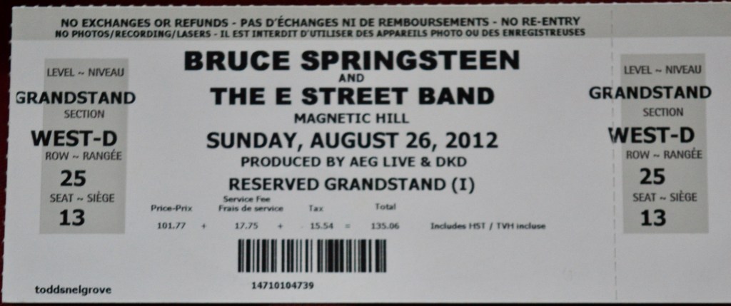 And so I was extra excited to see Bruce Springsteen on August 26th, 2012 at what I still think of as ‘the Pope site’. I walked to the show from my brother’s house, passing by lemonade stands, neighbours selling hot dogs, and the mysterious Magnetic Hill along the way. Thousands of others joined me for the pleasant stroll, and when we arrived we were through the gates in no time.