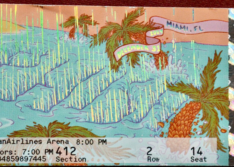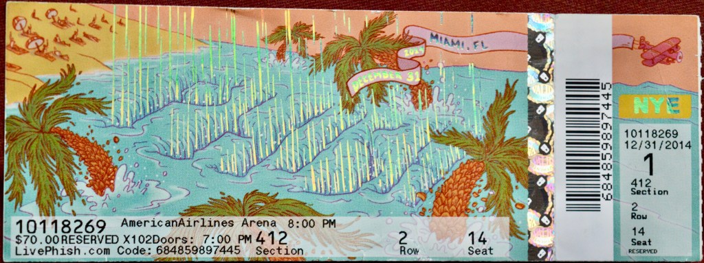 We had arrived in Miami without tickets to any of the shows. It’s not that tickets had been hard to come by, just the opposite. There were so many signs pointing to soft ticket sales we decided to take our chances on finding cheap tickets in the lot, and we were right. In shorts and a t-shirt and with a can of beer in my hand I scored a pair of NYE Phish tickets (well, two singles) out front of the venue for $10 each in no time flat. I feel I overpaid, but was still quite pleased with my purchase.