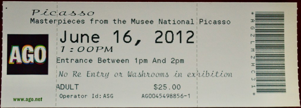 On June 16th, 2012 I had nothing on my schedule besides driving back to Ottawa from Niagara Falls, Ontario, where I had been entertained to no end by the strange pairing of Ringo Starr opening for Nik Wallenda. I had been looking for an opportunity to visit the Picasso exhibit that was touring through Toronto that summer and this was it, so I stopped in.