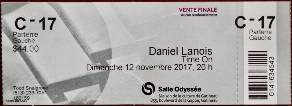 On November 12th, 2017 I saw one of the world’s great soundsmiths, Mr. Daniel Lanois at a hometown show in Gatineau, Quebec.