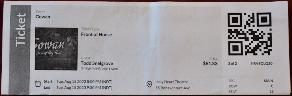 On August 15th, 2023 I went to see Gowan (née Lawrence Gowan, double-née Gowan) at the Holy Heart Theatre in St. John’s. It was a pretty good show, though not quite as good as I was expecting it to be. But as I sit here typing these words through a beautiful, sunny summer afternoon what strikes me most about this concert is that it occurred nearly a year ago.