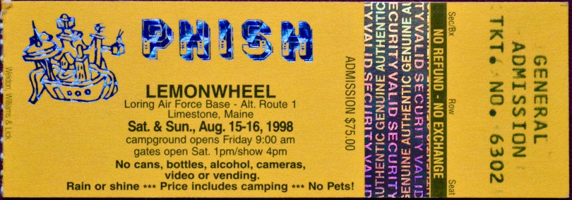 On August 16th, 1998 I woke up on the hard concrete tarmac of the Loring Air Force Base in Limestone, Maine. Temporarily the largest city in Maine, the base was base for Phish’s third-ever weekend festival, a weekend-long extravaganza called Lemonwheel. In a fit of temporary insanity I had skipped The Great Went (and all Phish concerts in fact) in 1997, a year that will forever be known as the greatest year of Phish ever. Ah well, here I was.