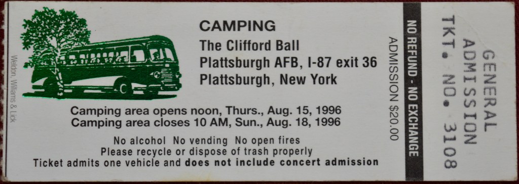 Being as it was the second and ultimate day of The Clifford Ball, August 17th, 1996 marked the end of the beginning of Phish festivals, a series of weekend concerts hosted by the greatest band in the land that has so far numbered ten (eleven if you count Curveball, which was cancelled), of which I have attended six (seven if you count Curveball but c’mon now, who am I kidding? Even though I was onsite with all my friends and well into my second day of revelling in the super-choice VIP camping area when the cancellation was announced doesn’t mean a festival that never happened should “count”…). And I tell you, they were all fantastic.