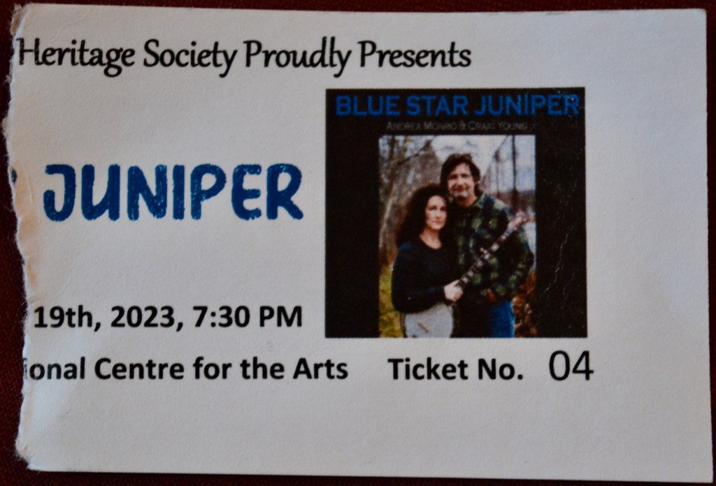 On August 19th, 2023 m’lady and I drove across the barrens to Heart’s Content to see Blue Star Juniper perform at the Regional Centre for the Arts.