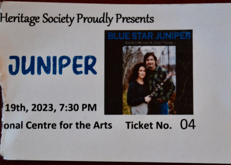 On August 19th, 2023 m’lady and I drove across the barrens to Heart’s Content to see Blue Star Juniper perform at the Regional Centre for the Arts.