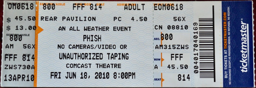 M’lady and I were in the pavilion for the show – which didn’t really matter because it wasn’t raining – but it was nice to be fairly close and central. The show was great from the get-go with a particularly fun three-song second set punch in the form of Tweezer/Theme From The Bottom/Harry Hood, a musical triumvirate of personal favourites.