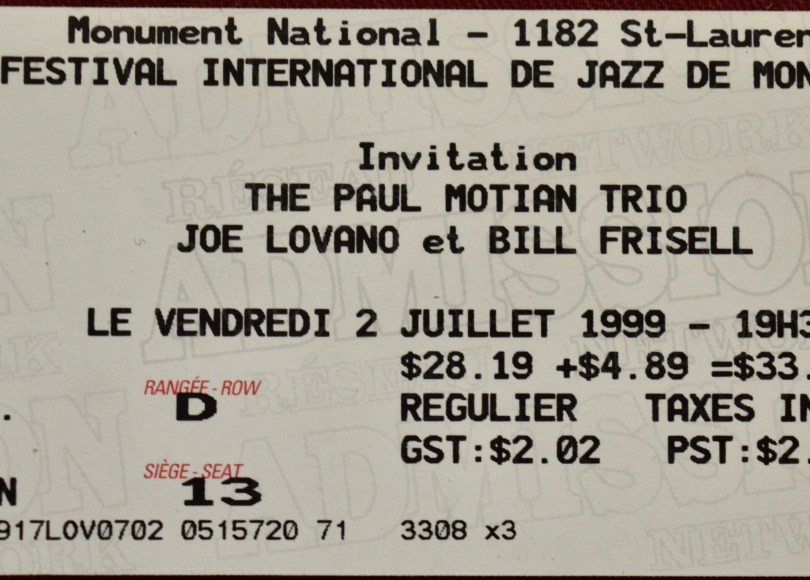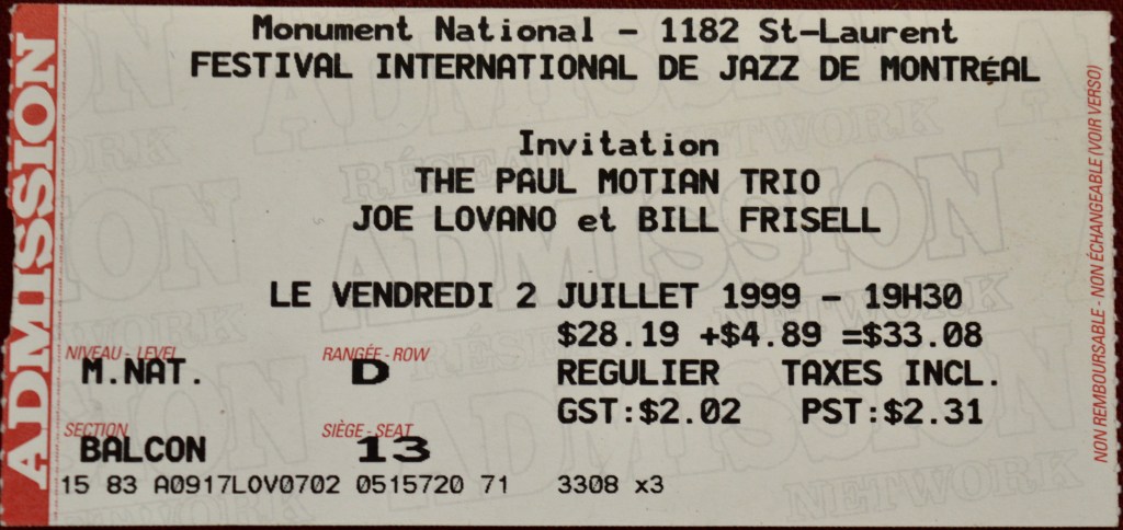 On July 2nd, 1999 I was one of a tri-generational trio of good friends and guitar geeks that made the drive from Ottawa to Montreal to see Bill Frisell play guitar. It was part of the Montreal jazz festival, an indoor ticketed show starring the late Paul Motian (1931-2011) but with much respect to the extraordinary drummer and saxophonist Joe Lovano (who was also on the gig), we were all there for Frisell, 100%. And he did not disappoint.